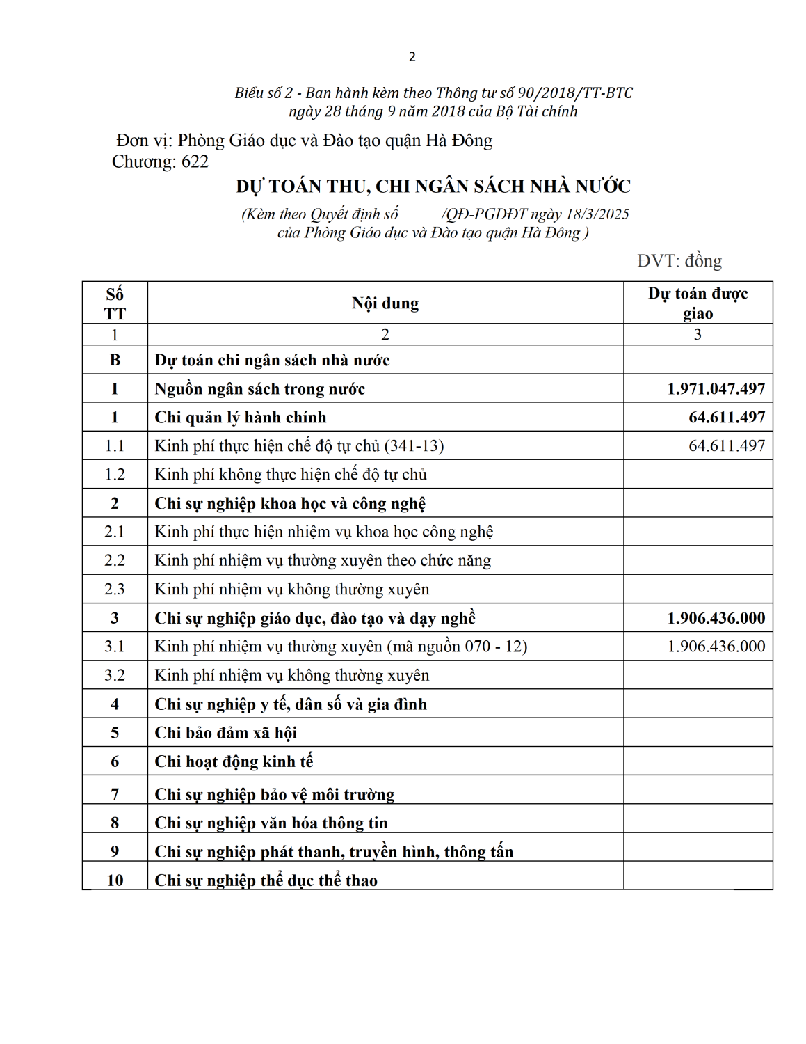 Về việc công khai dự toán thu, chi ngân sách (lần 1) năm 2025 của phòng Giáo dục và Đào tạo quận Hà Đông