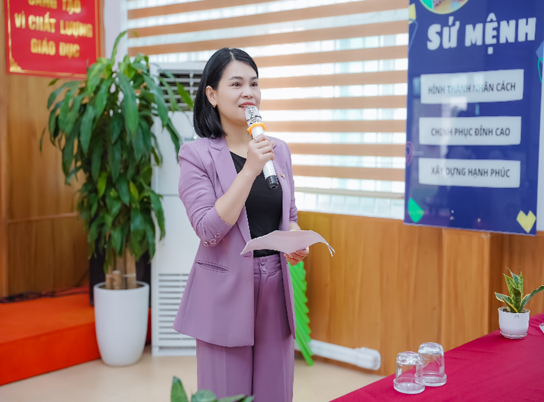 Cũng tại Hội nghị, đồng chí Vũ Vương Kiều Hoa - Hiệu trưởng trường MN Hoa Hồng đã chia sẻ tham luận về phát triển chương trình lồng ghép giáo dục lễ giáo, kỹ năng sống cho trẻ mầm non.