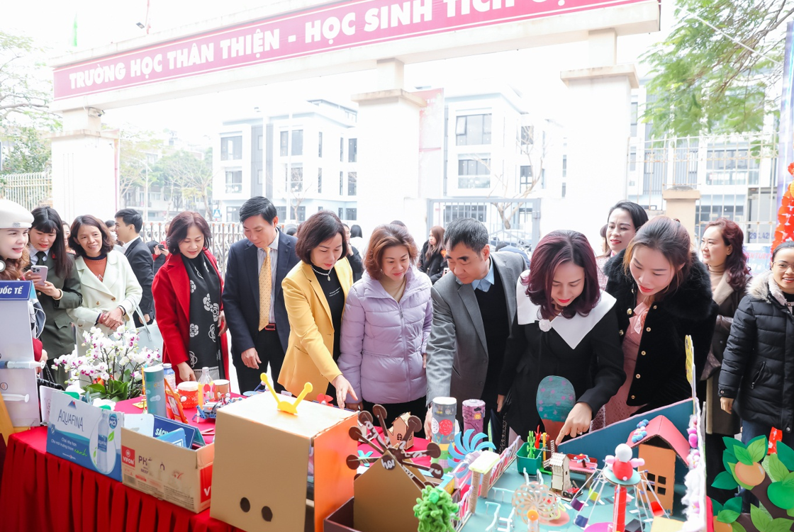 Các ông, bà lãnh đạo Sở GDĐT Hà Nội, Quận Hà Đông, Phòng GDĐT, giáo viên, nhân viên các trường tham quan các gian hàng