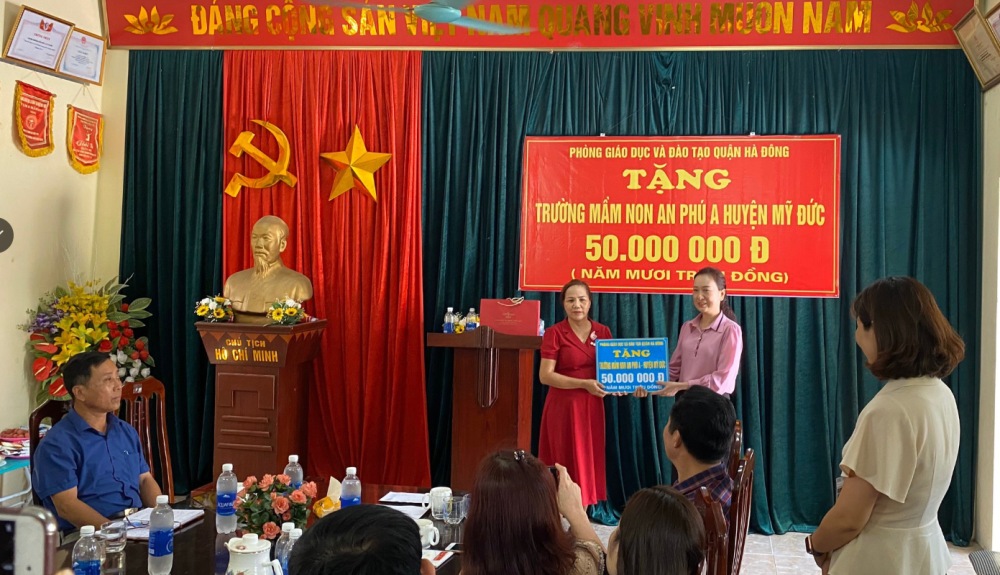 Với số tiền mặt 50 triệu đồng là những đóng góp của ngành giáo dục, đào tạo quận Hà Đông đã chung tay chia sẻ với khó khăn của của cô trò Trường mầm non An Phú. Đây là xã miền núi còn nhiều khó khăn của huyện Mỹ Đức với 2 điểm trường cách xa nhau 9 km. Sự hỗ trợ này sẽ giúp cho nhà trường hoàn thiện bếp ăn bán trú cho trẻ. Được biết, Phòng giáo dục và đào tạo Hà Đông và Phòng giáo dục, đào tạo huyện Mỹ Đức đã kết nghĩa nhiều năm nay. Năm 2019, Phòng giáo dục và đạo quận Hà Đông đã tặng gần 70 triệu đồng cho Trường Tiểu học An Tiến để bổ sung bàn ghế cho học sinh.