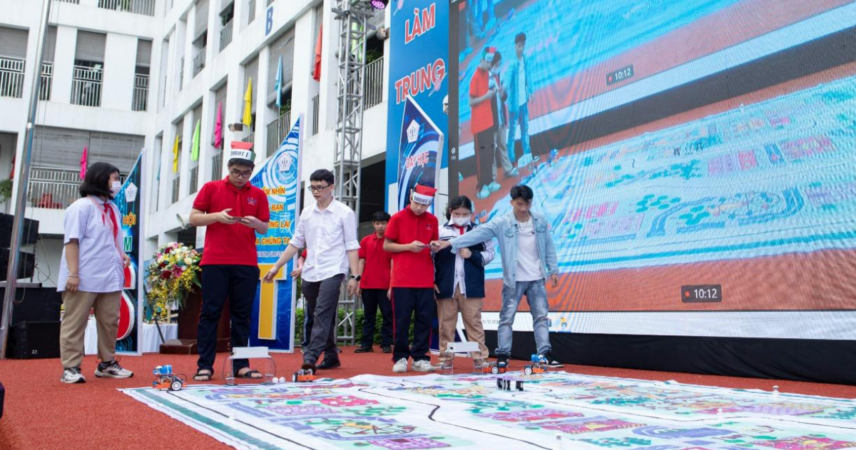 -Đặc biệt, các em học sinh còn được tham gia vào cuộc thi thiết kế, lắp rắp và điều khiển robot trực tiếp trên sân khấu. Thông qua chuỗi hoạt động này, các giá trị và phương pháp giáo dục STEM được lan tỏa mạnh mẽ góp phần khơi dậy đam mê khoa học, sự sáng tạo của các em học sinh.