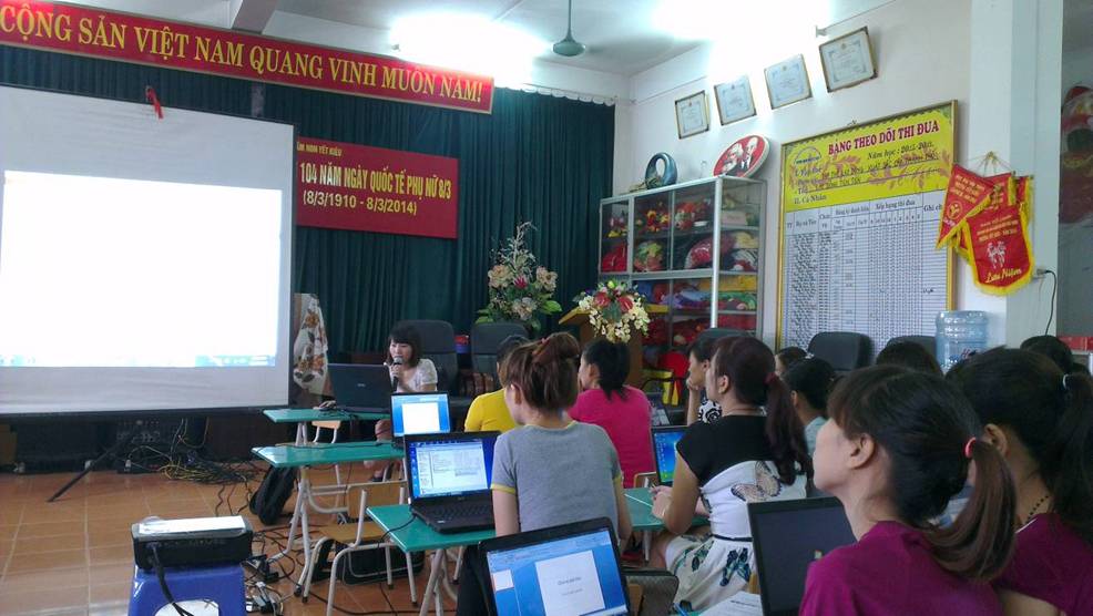 Trường MN Sơn Ca bồi dưỡng CNTT cho giáo viên chuẩn bị cho năm học mới 2014-2015