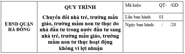 Quy định trình tự và cách thức thẩm định, cấp Quyết định chuyển đổi nhà trẻ, trường mẫu giáo, trường mầm non tư thục do nhà đầu tư trong nước đầu tư sang nhà trẻ, trường mẫu giáo, trường mầm non tư thục hoạt động không vì lợi nhuận của Ủy ban nhân dân quận.